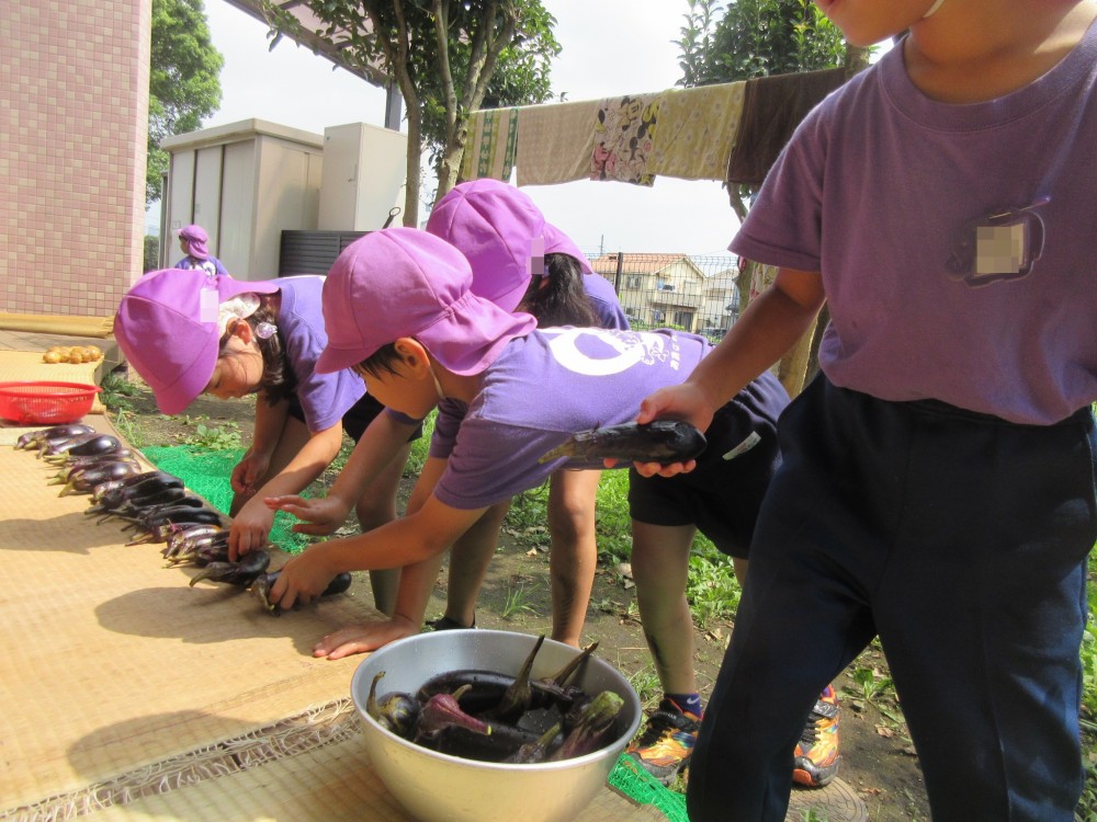 前日から第二っ子畑で育った栄養たっぷりの野菜を収穫。