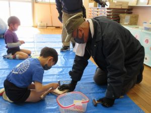 子ども達が体験したお仕事や持って帰ってきたグッズやお土産を見ながら