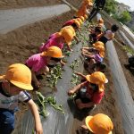 初めて見るサツマイモの苗に興味深々な子ども達♡