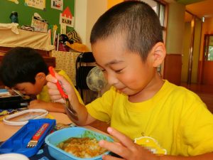 子ども達は完成したカレーを見てとても嬉しい気持ちと早く食べたい気持ちが溢れていました♪