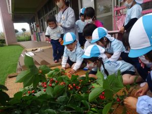 第二っこ畑にあるいちご畑では、よく見て赤くなっているものを探し、