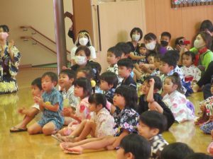 先生達の劇を見て、たくさん笑いました。