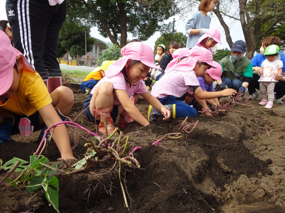 先生みてみて~!おっきいのとれた~!!」 (年中さつまいも掘り)