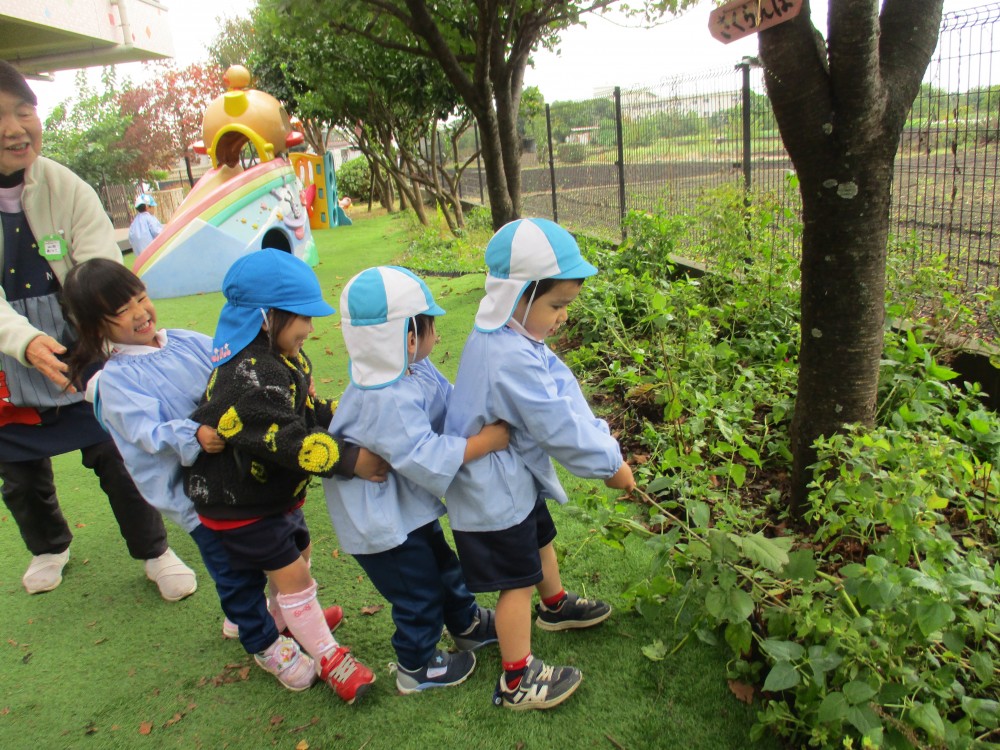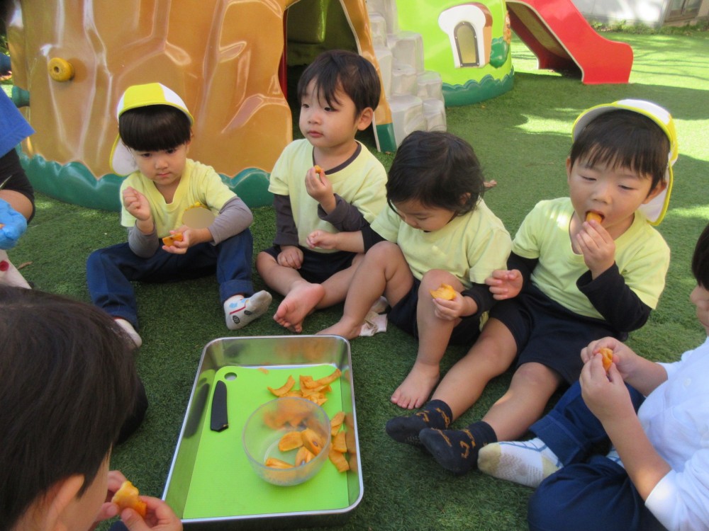 園に実っている、柿やみかんを見つけて、「たべたい!!」