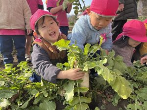 だいにっこ畑で育てたミニ大根と油揚げを入れて作りました。