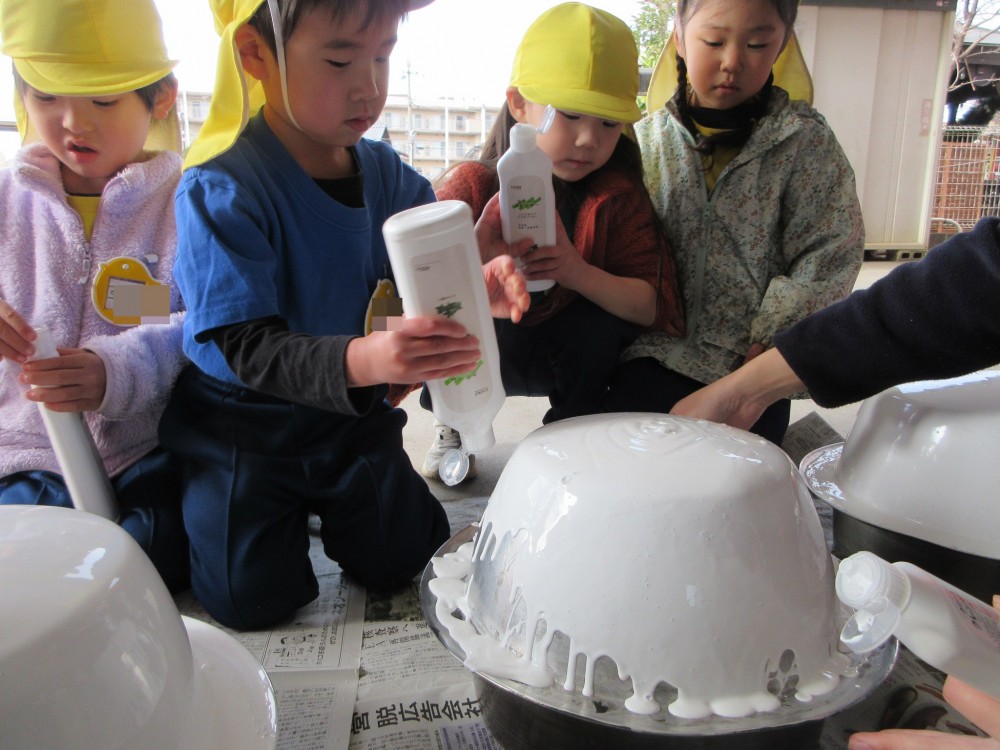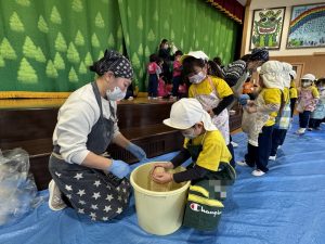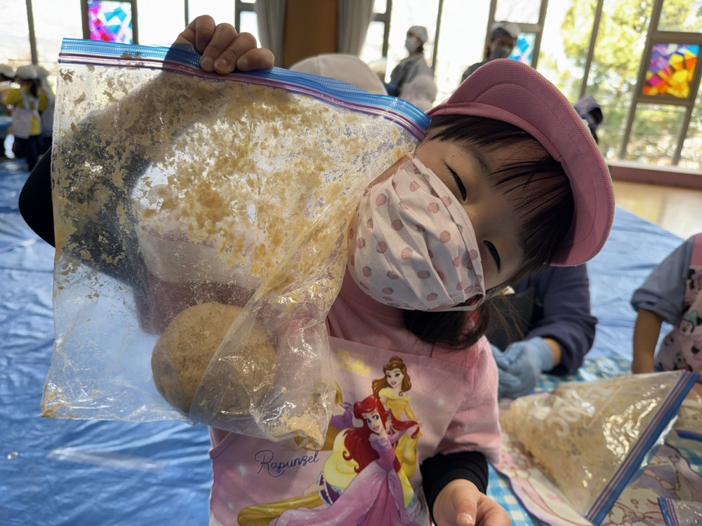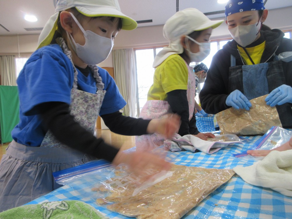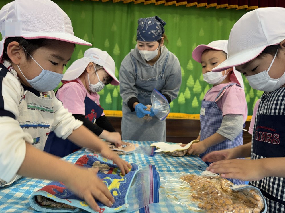 大豆が潰れていく感覚が楽しいようで、子どもたちも夢中になっていました♩