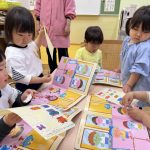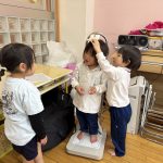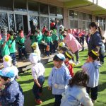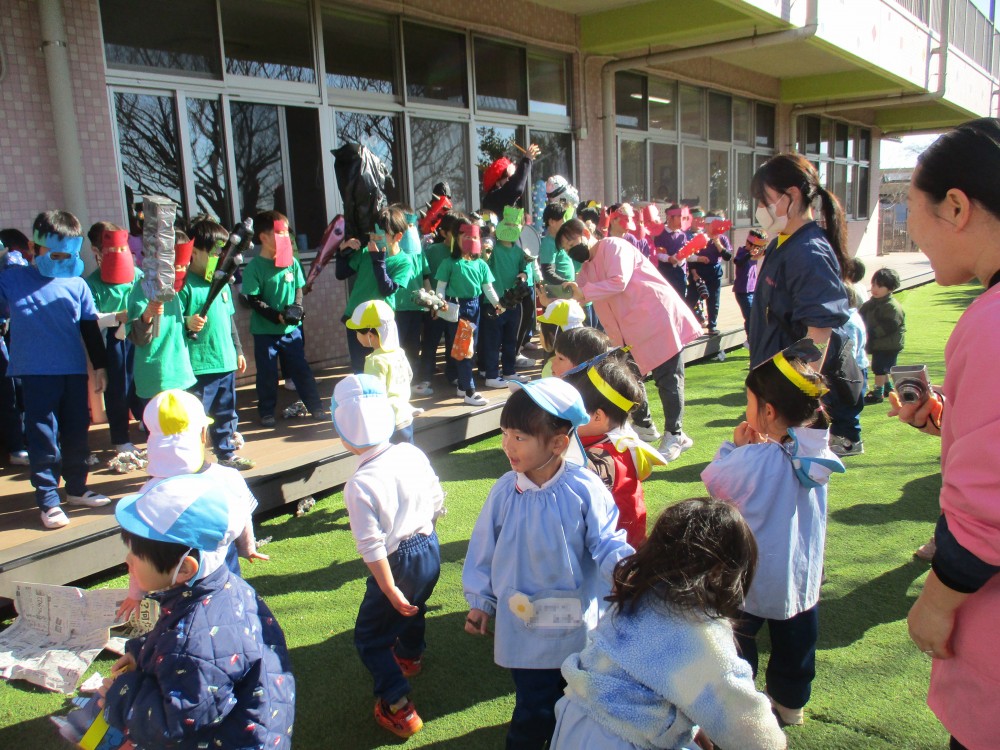 2月3日には年長さんが優しい鬼に変身して遊びに来てくれました。新聞紙で作った豆を投げて、「おにはそと~!ふくはうち~!」楽しく豆まきをすることができました!