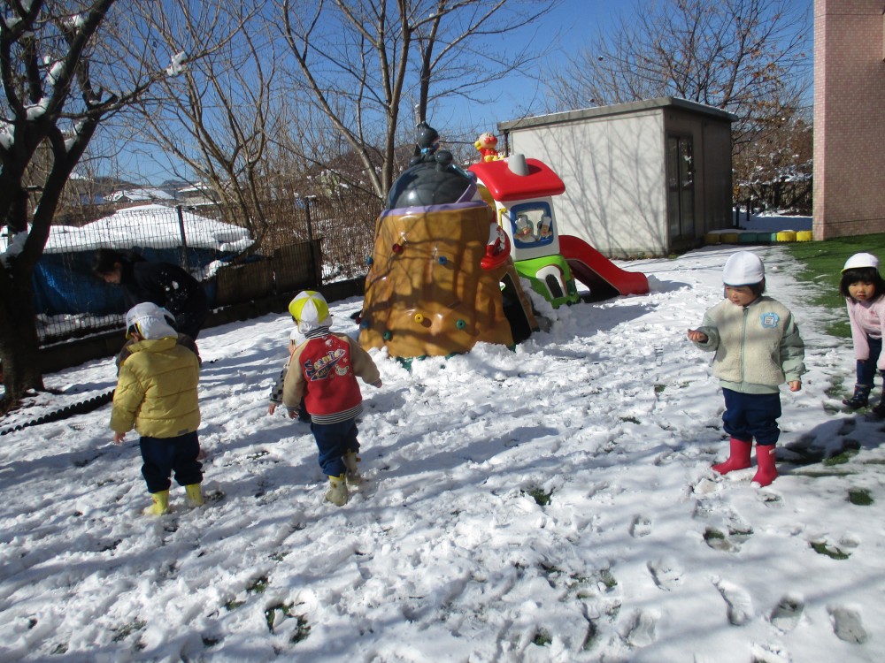 幼稚園が雪で真っ白になっていた日もありましたね!みんなで雪合戦をしたり、雪だるまを作ったりと雪遊びをして楽しみました!お友達と一緒に雪遊びができてよかったね!