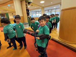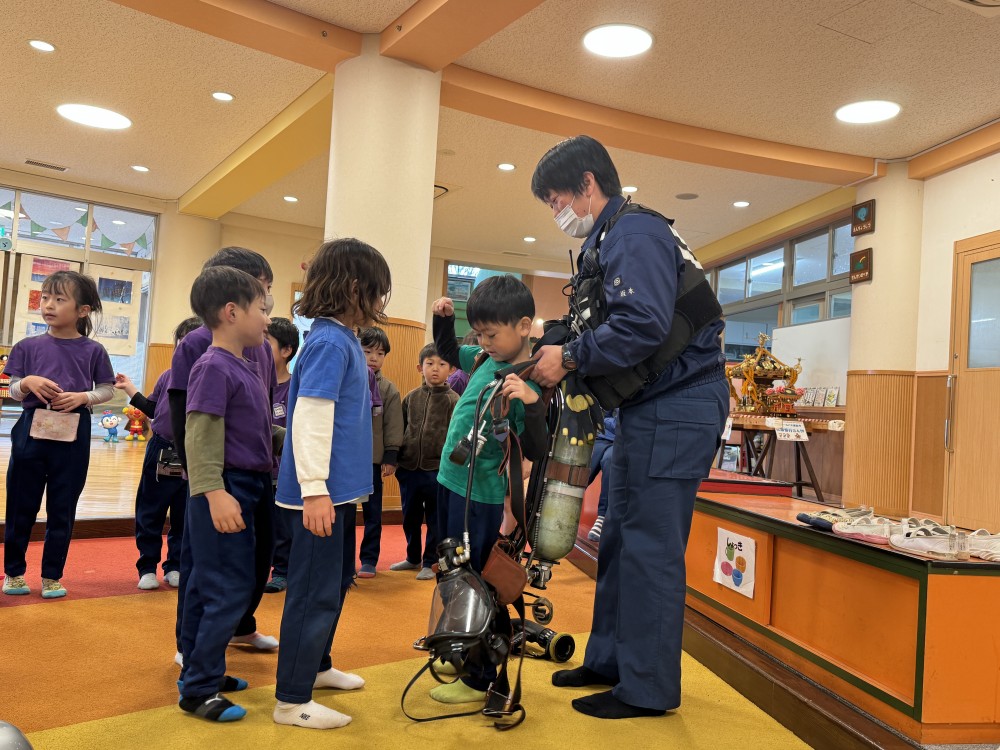 消防士さんに真剣に取り組む姿を褒めてもらいました。