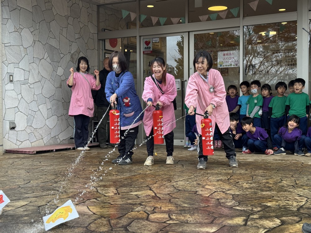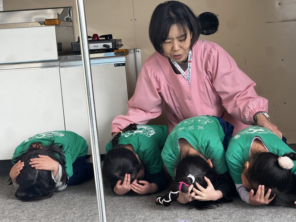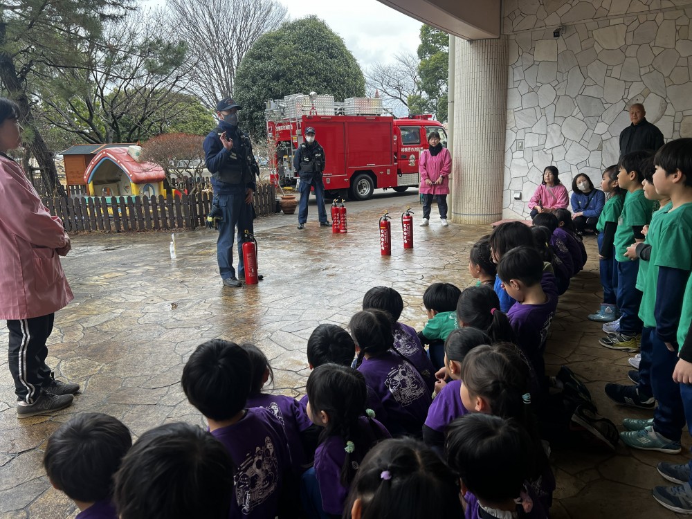 火事の時の避難を全園児で実施しました。