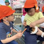 「みてみて~!ウサギさんバッチだよ!」とうれしそうな顔をして先生に見せてくれました!ウサギさんバッチとってもかっこいいね☆